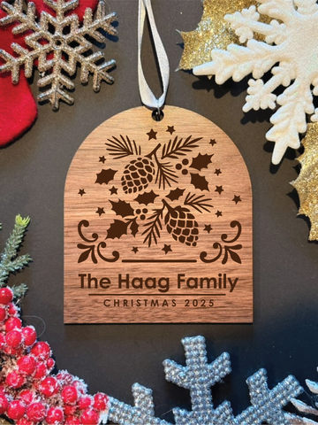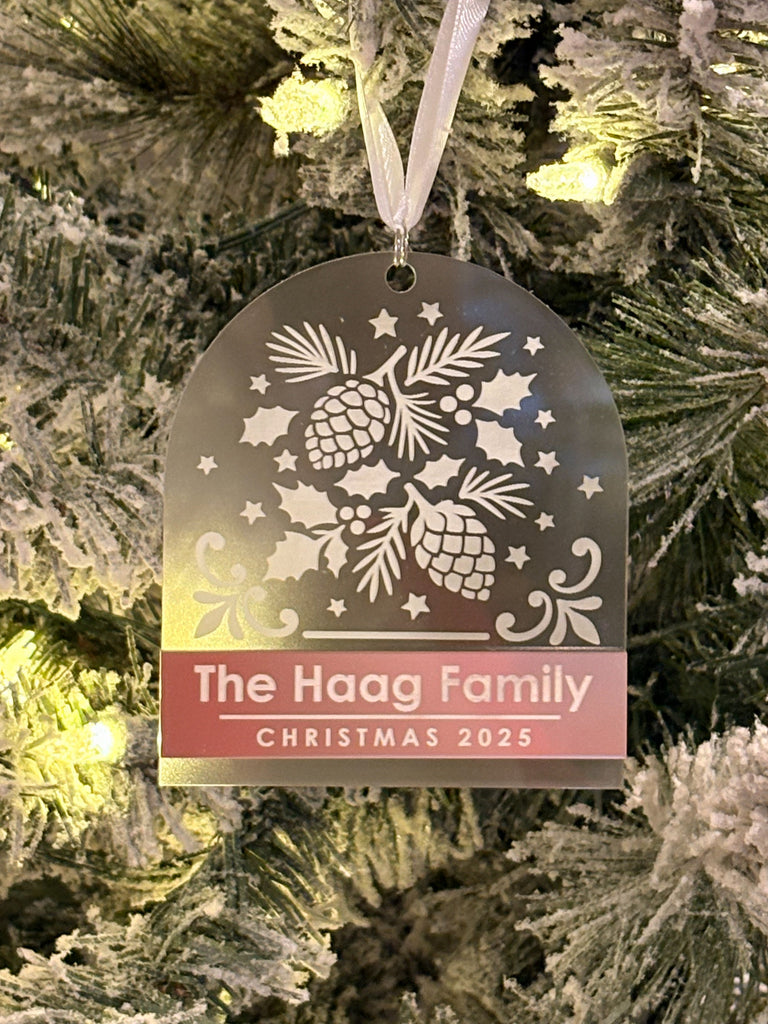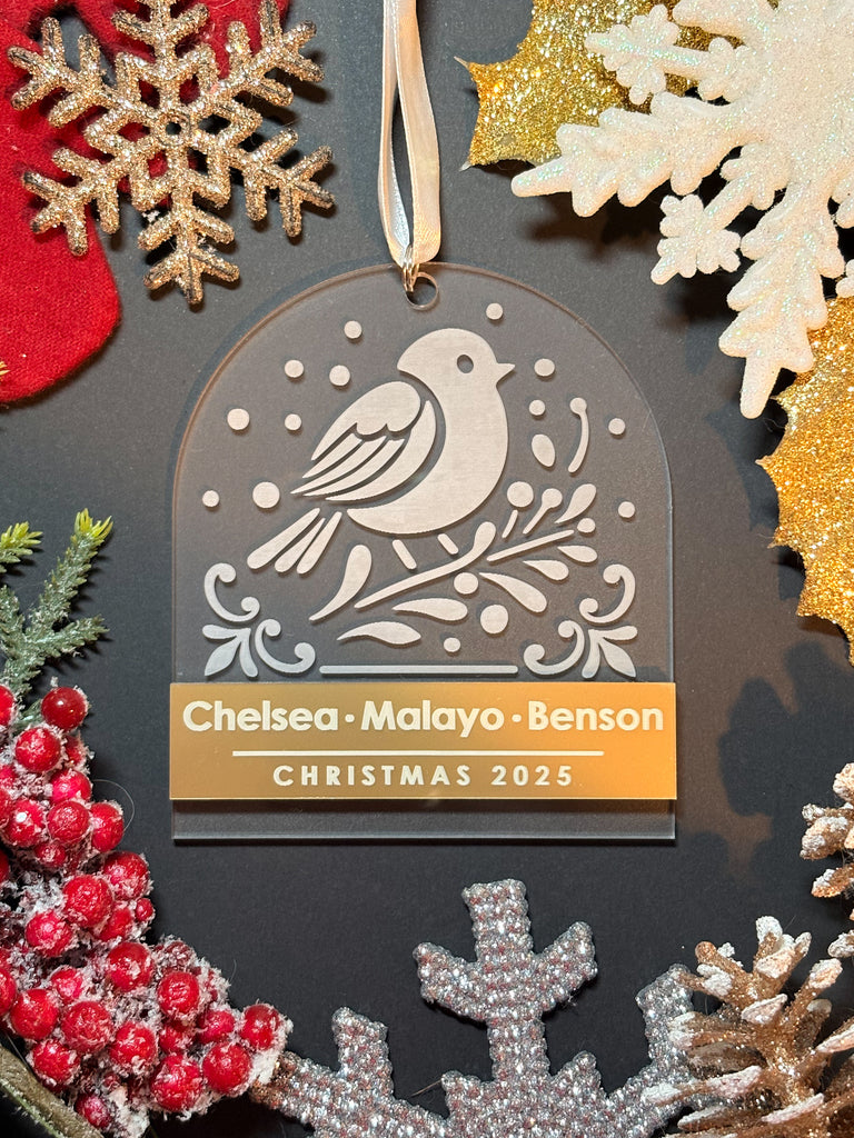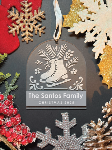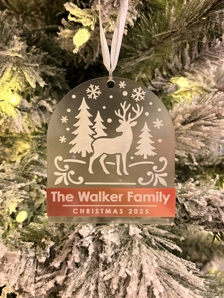 The Winterscapes Series is an elevated and luxe selection of ornaments for your tree. All ornaments measure approximately 3 3/8”x 3 7/8”, are made of clear, opaque and either champagne gold or silver acrylic and come inside a golden, silk drawstring bag.